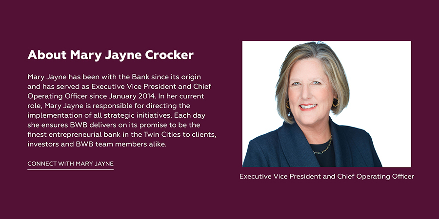 By Mary Jayne Crocker, Executive Vice President & Chief Operating Officer at Bridgewater Bank