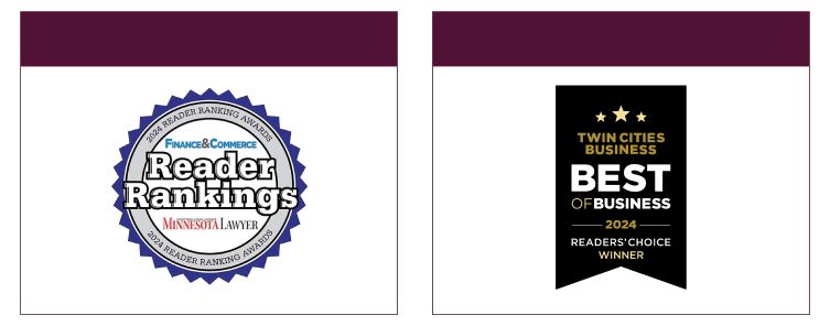 • Finance & Commerce Reader Rankings – Best Business Bank (2nd) / Best Small Business Banking (2nd) / Best Commercial Mortgage Lender (2nd)