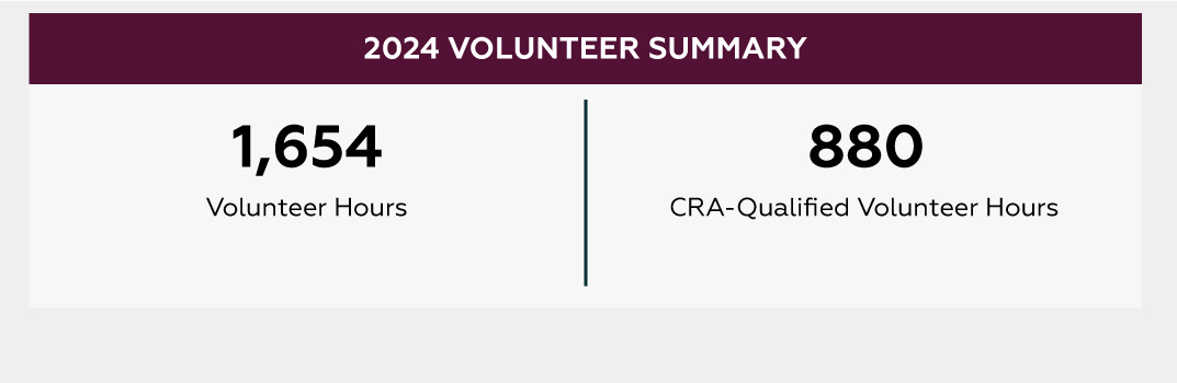 In fact, through our unique Volunteer Time Off program, we create community engagement opportunities for team members that are meaningful, purposeful and help those in need. As part of this program, all full-time team members receive up to 16 hours of paid time off per year for any volunteer opportunity meeting CRA requirements.